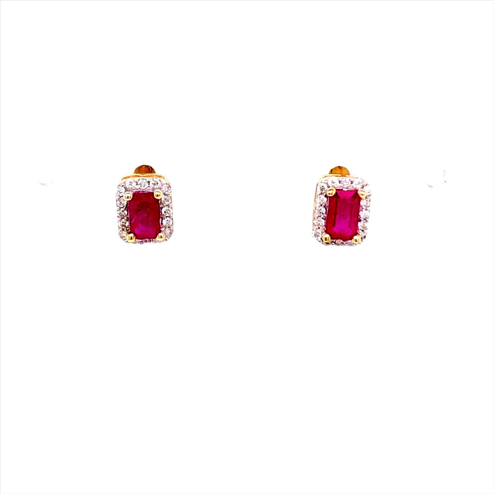 9ct diamond and natural ruby earrings. Setting includes 32 diamonds with a total diamond weight of 0.16ct and 2 rubies with a total weight of 0.60ct.