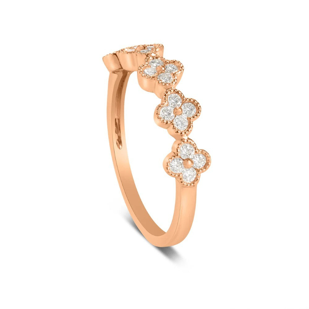 14 Ct Rose Gold Diamond Clover Ring