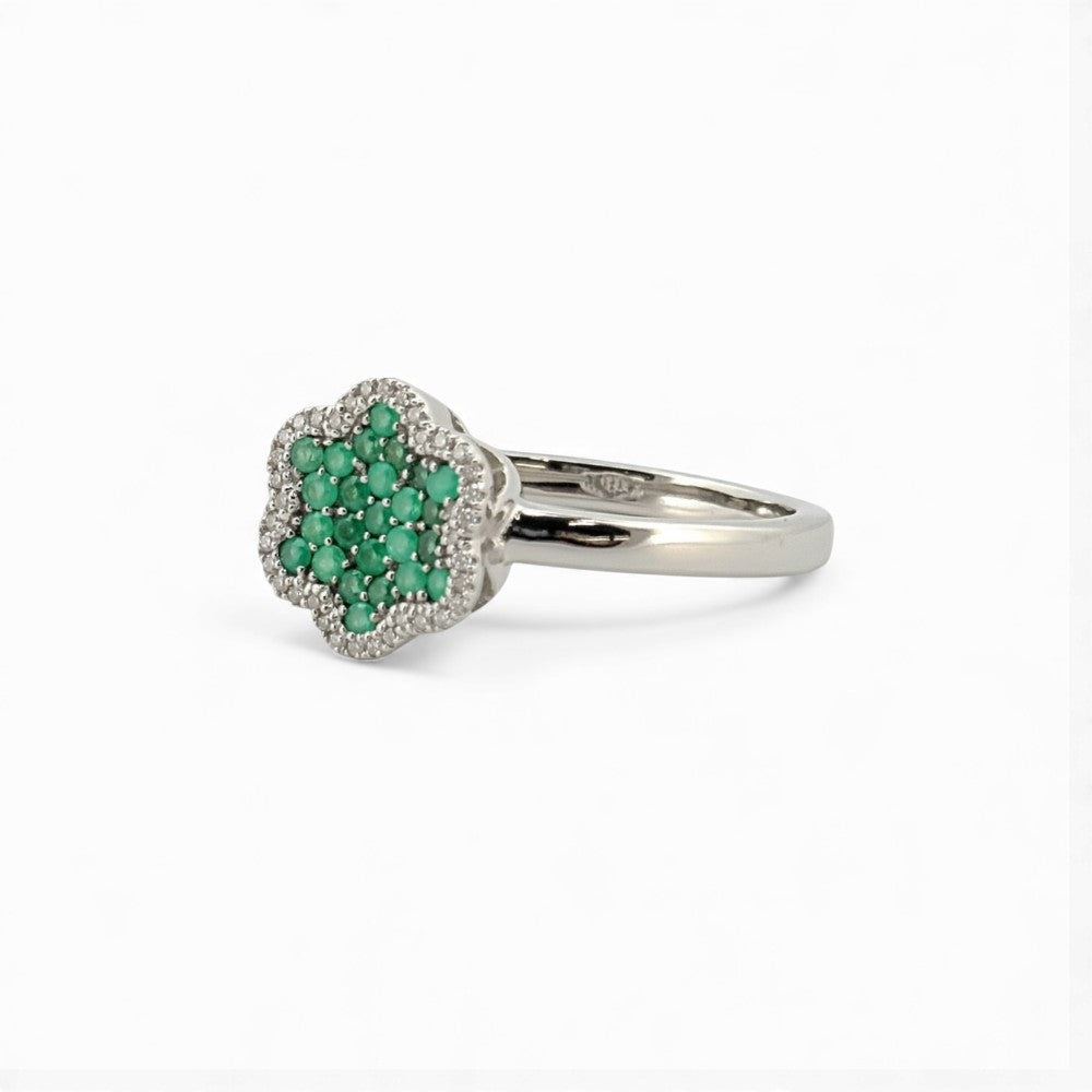 White Gold Emerald Cluster Ring